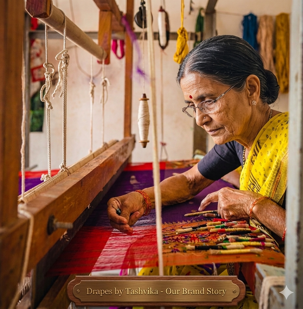 At Drapes by Tashvika, every saree tells a story of heritage, craftsmanship, and timeless elegance.